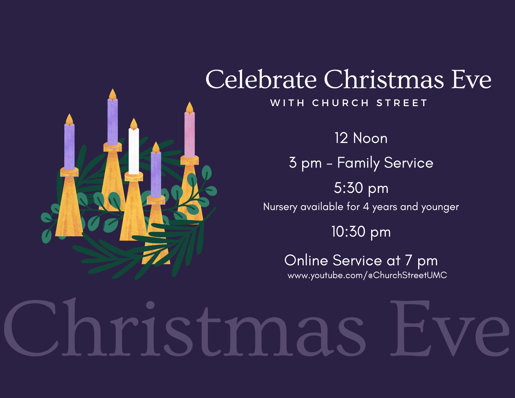 - 12 pm: Traditional Candlelight Communion service